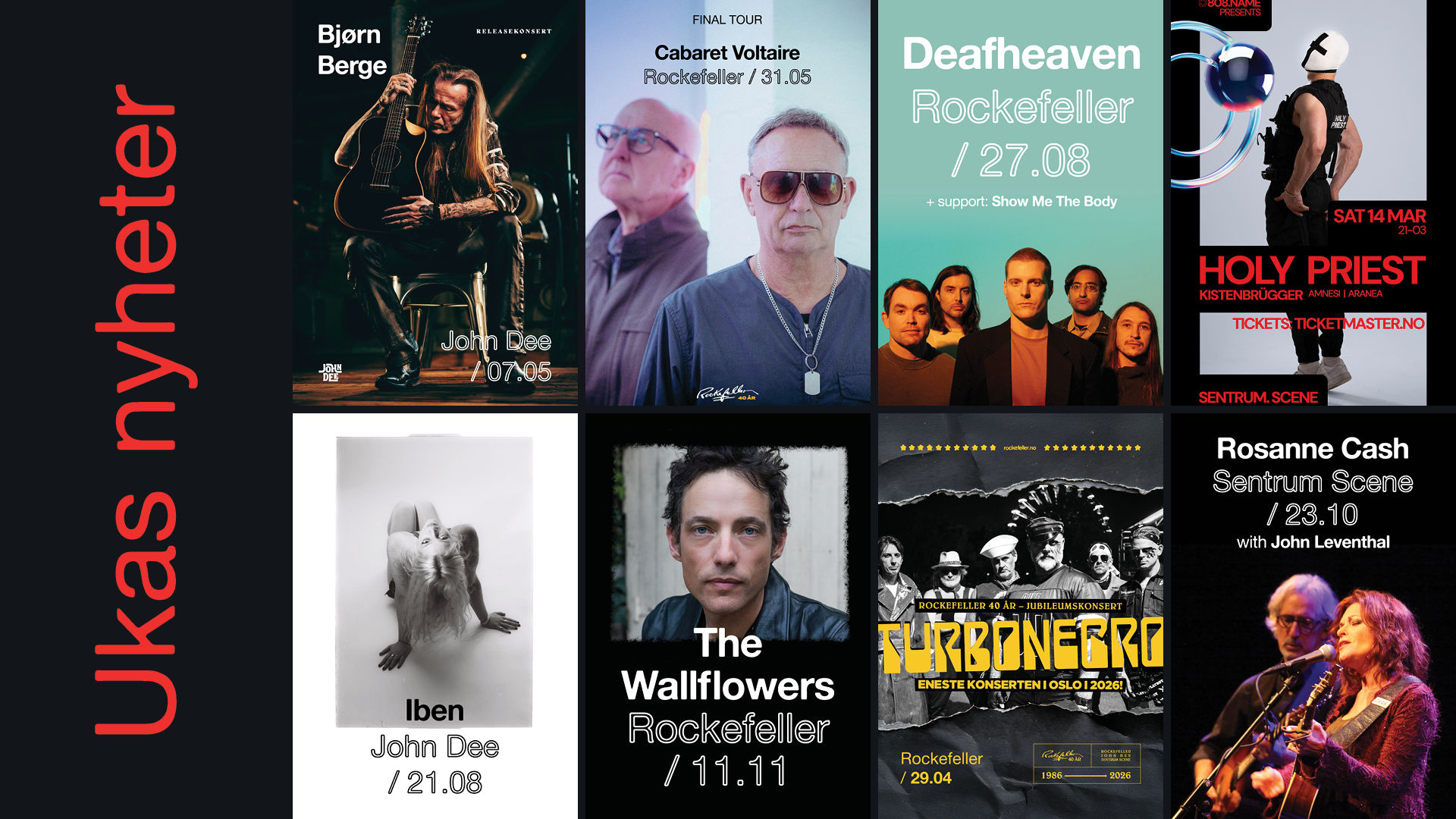 Deafheaven / Turbonegro / Rosanne Cash / The Wallflowers / Cabaret Voltaire / Holy Priest / Bjørn Berge / Iben.