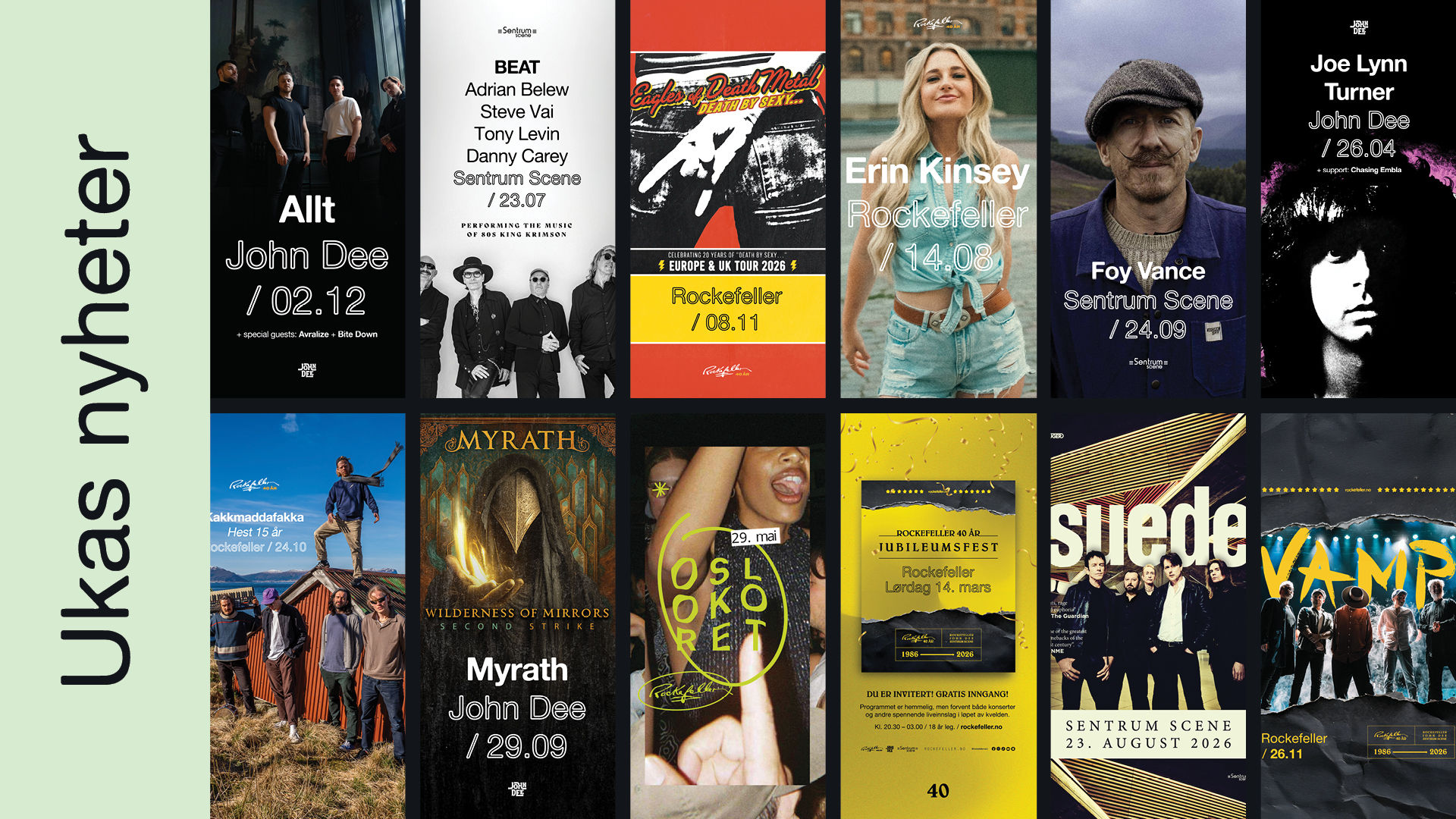 Suede / BEAT / Eagles of Death Metal / Jubileumsfest / Foy Vance / Erin Kinsey / Kakkmaddafakka / Vamp / Oslokoret / Allt / Myrath / Joe Lynn Turner / Popquiz.